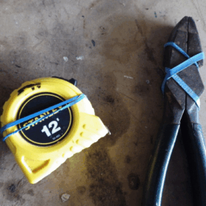 - If you’re working on a roof or other slanted surface, stretch a rubber band around your tools to prevent them from sliding off.