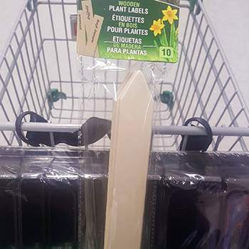 I usually go for picking up a pack of popsicle sticks to make my plant labels (using an eco-friendly weatherproof marker so the marker doesn’t run), but would you believe they’d run out of popsicle sticks? Dollarama had these much bigger plant labels at 10 for $1.25, and they’re about a foot long. My local gardening store sells plant labels this size for $4 per 10. (Although you may save more from a garden center when buying in bulk.)