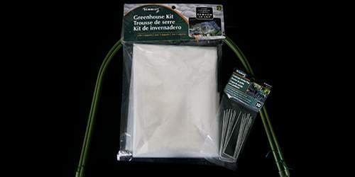 This mini row cover (or greenhouse, as they call it), is actually a pretty good deal if you’re looking to just cover a row or three. The plastic cover is surprisingly large and thick (so it’ll last a season or three), and the plastic hoops are pretty sturdy. I picked this up for the hoops to fit over my elevated raised bed with a row cover (which they also had) and insect netting while saving the plastic sheet for another project.