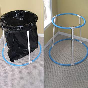 This holder is an easy project to make at home. Just build a frame that will stand and put a large trash bag in it.