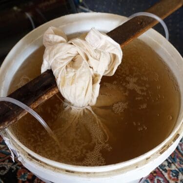 Cover the bucket with a breathable cloth to keep insects out and let it steep. You will notice a smell developing as fermentation begins; this is normal and indicates the process is working. Stir the mixture every other day for about two to three weeks, until the plant matter has broken down and the water turns a dark, tea-like color.