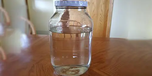 For 1 quart of the diatomaceous earth solution, add 5 tablespoons plus 1 teaspoon of food-grade diatomaceous earth to the jar, then fill it with water. Shake vigorously, and store for up to a year in a cool, dry place. Over time, the DE will settle to the bottom – but all you have to do is shake the jar to make it ready to use again!