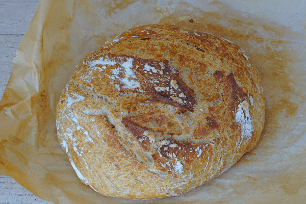 5. Remove the lid and bake the bread for an additional 15 minutes. Slice the bread when it has cooled down to room temperature.