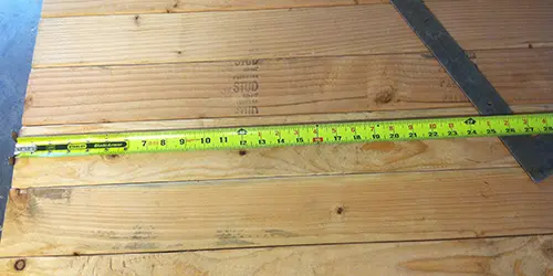 Step 5: Fold each cross-piece together so the edges are flush. Lay them on a flat surface and measure 20 inches down from the square end and make a mark on the edge of each board. This where you’ll place the top edge of your bracing boards.