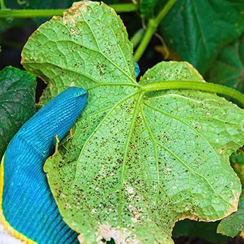 - Aphids: Aphids reproduce quickly, and when they do, they’re difficult to control. As soon as they’re spotted, use insecticidal soap to treat the plant. You can also fill yellow pans with water, this will get their attention and drown them. Another trick is to plant cucumbers in a bed covered with aluminum foil.