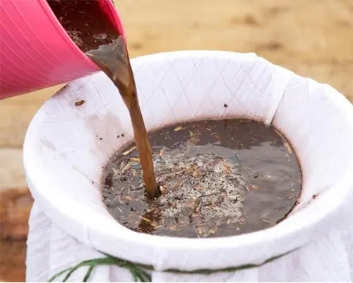 You can also use an old pillowcase by stuffing it with compost and immersing this in the water. It’s easy and well you will only need gardening rubber gloves to squeeze out the extract submerging it into the water several times.