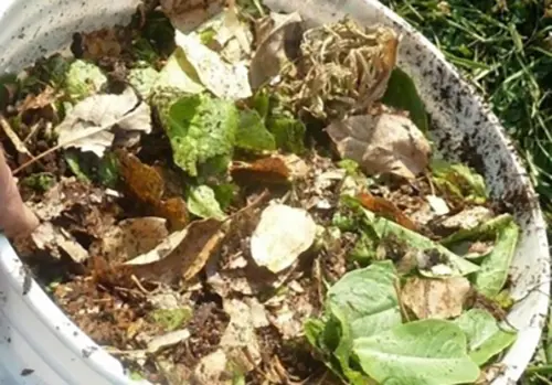 - Fill the pail or whatever utensil with compost, and if you don’t have compost then extra kitchen scraps will be fine, and here’s a shortcut. Blend all the scraps. That’s what I do. Now you have a nice thick gooey paste and add this into the compost that you filled the bucket with.
