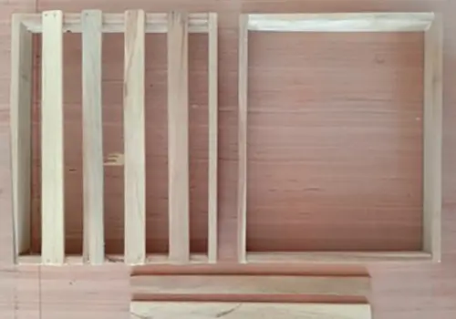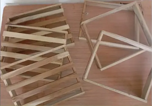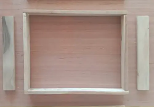 - Now, make a frame with sticks of lengths (28 x 3 x 1) and (21 x 3 x 1) using wood glue and nails.