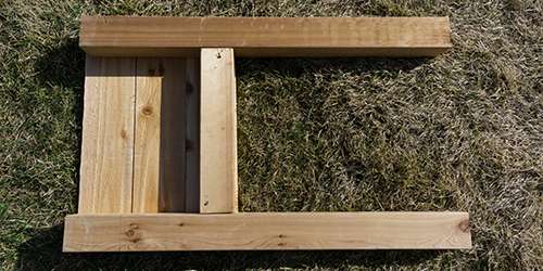 Since we had enough 4×4 leftover from the cuts, we used that for the short crossbars. You can swap this for a 2×4 and end up with a deeper bed.