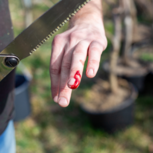 Gardens are gentle, quiet places that often offer us peace and relaxing moments. Until the thorns of a blackberry vine cut our arms like a razor. The simple fact of the matter is that even the gentlest places can cause some injuries or worse. That goes from the amount of bacteria in manure and compost to the sprains of constant digging or cuts from the smallest garden tools.