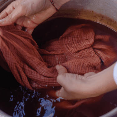 - Reapply your mordant by immersing the fabric in the mordant mix and rinse again.