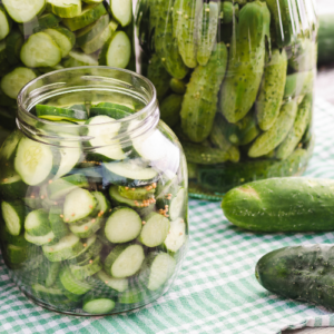 In traditional canned bread and butter pickles, vinegar is a key ingredient, and the brine is heated to help preserve the cucumbers. If you choose fermenting, you should replace vinegar with water and salt. Also, no heat is used. This allows beneficial bacteria to naturally develop during fermentation, which creates a probiotic-rich flavor that’s a bit different from the sweet and tangy taste of canned pickles.