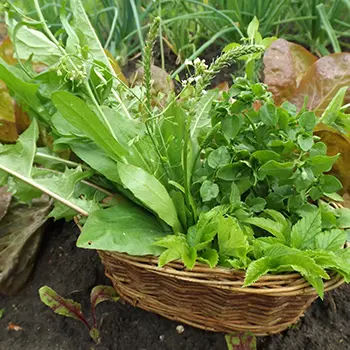 - Plantain Leaves: Young tender plantain leaves are similar to spinach, they can be eaten in a stew, a salad, or you can add them to smoothies. But make sure you use the young leaves for food as the older leaves are bitter. Plantain leaves are great for soothing bug bites, bee stings, burns, and itchy skin. Make a salve and apply it directly to the skin. You can also use plantain leaves for sunburn by freezing them in aloe.