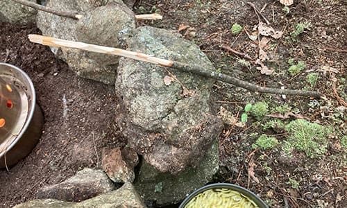 When setup time comes, I build a twiggy fire. That’s just a small campfire. There’s not a lot of signature with a twiggy fire, so if you’re concerned about that, this should help to ease your mind. You can always bake in the daytime if a light signature is a concern of yours as well.