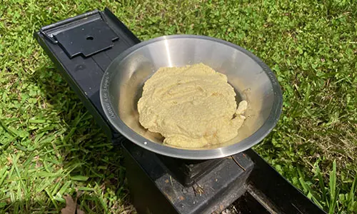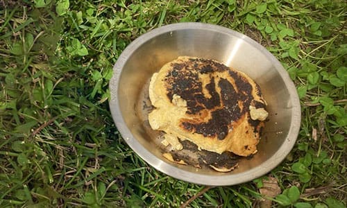 Using my same Ziploc method, I used corn meal to fashion out a little cake on a little steel plate I was using as my frying pan. You do need butter for this recipe. It tastes very bland otherwise. I doubt you’re going to be carrying butter in your BOB, but if you’re at your house when you need to make some off-grid bread, this is something to consider.
