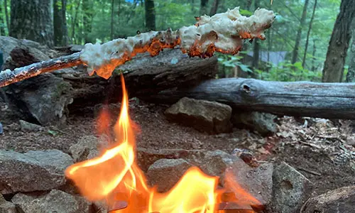 We have used biscuit mix for the stick bread and that works very well. You can close off the end when you put it on your stick and then put jam down in the hole after it’s baked.