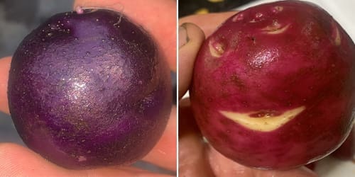 I crossed the purple and red potatoes and this produced the white potato with pink/purple spots.