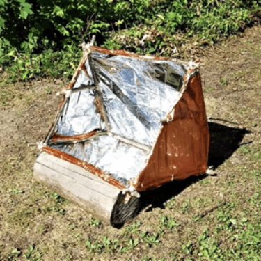 All you have to do is build a framework from sticks and surround the framework with the reflective foil or Mylar.
