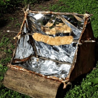You can even bake bread in a solar reflector oven. It’s an old pioneer technique skewering or wrapping dough on a stick and suspending it in the solar oven.
