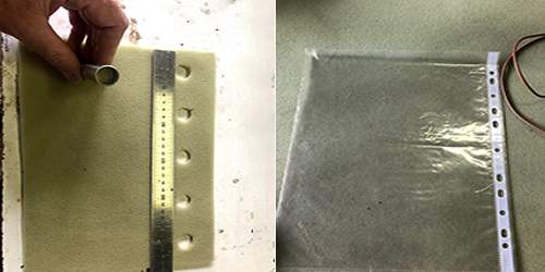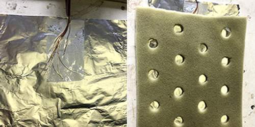 Attach Wire to Foil and Punch holes in Foam, Tests Circuit and Sleeve