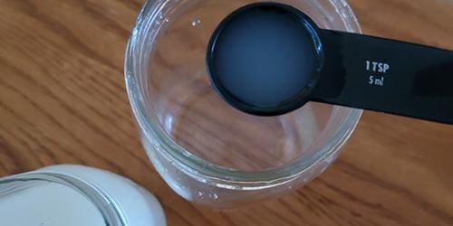 - Emulsify your neem oil: Add 1 teaspoon of diatomaceous earth solution (or liquid soap – see above) to 1 tablespoon of neem oil in a quart jar and stir until combined. The mixture should look almost creamy. Neem oil has a pungent smell, so you may want to do this outside.