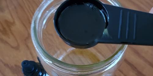 - Add warm (not hot!) water to the neem oil/DE mixture until the jar is ¾ full, stir, put the lid on, and shake until your arms hurt. Keep going until you no longer see oil droplets forming on the surface when the jar settles.