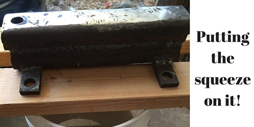 Set your press inside the bucket over the pulp. Then I set the re-used water bucket inside of that bucket (because water is heavy). That will work over time. I also sat on it.. put my anvil on it.. and stood in it. It’s pretty quick. whatever heavy you have for the top.