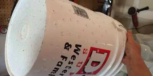 Get two 5 gal buckets. $3 each at walmart. Drill a lot of holes in it, about 2 inches down from the lips and around 3/16 size-ish. I used a soldering iron. You can use a screw driver and stab holes all in there. Go around all the bucket and on the bottom. [Todd’s note: Buckets can be had for free at bakery’s and construction sites]