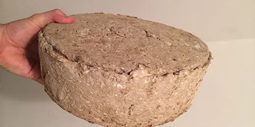 Now once most the water is pressed out – take it out to a sunny/dry place. Turn over the bucket and tap on the top. It will take some time to dry, depending on your location. We live in the desert so this will happen fast. If you want it to dry faster, cut these logs as you would a pizza, into sections.