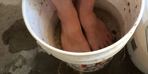 Next, pull out the holy bucket and let it drain. I put the draining bucket on top of the other bucket to save the water – you can re-use the same water many times.
