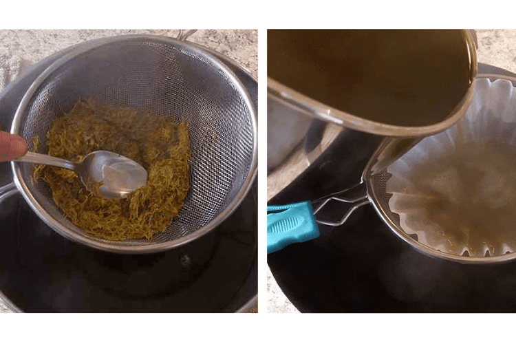 Now, you’ll need to strain the flowers from the water. KEEP THE WATER! That’s what you’ll use to make the jelly.