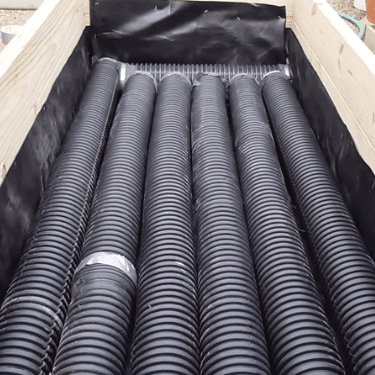 A wicking bed concentrates water at the bottom of a raised bed. The water is typically contained in large, corrugated pipes about 4 to 6-inches in diameter with slits cut in the top half. They are then topped with a mix of mulch and soil that slowly “wicks” the water up to the roots of plants growing in the bed.