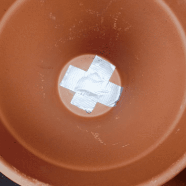 Start by sealing the hole in the bottom of the pot with duct tape.