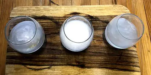 The images below show the setup of the experiment. I started by grinding common board chalk, or calcium carbonate, down to a very fine consistency. Then prepare two equal amounts of water, one standard tap water, the other is a mixture of tap water and chalk. Then I added 1ml of dishwashing detergent to both batches of water in the shaker. The normal tap water will fill the shaker with suds almost immediately.