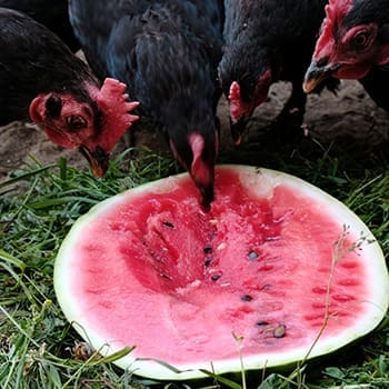 Since chickens don’t appreciate being doused with water, I usually freeze cucumbers or bananas and toss them into the coop during the hottest part of the day. Not only does this impart important electrolytes and minerals, but the chill will last as it works its way through their digestive system and gives them a chance to get rid of some of that heat.