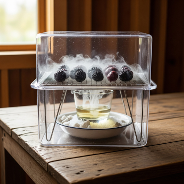 For those who like to experiment, a simple alcohol bath setup can accelerate sublimation. Freeze your food solid and place it on a wire rack inside a sealed container. Under the rack, put a shallow dish filled with high-proof alcohol (like 190-proof Everclear) and a handful of rock salt.