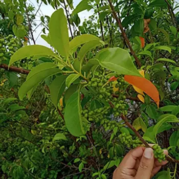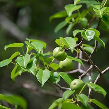 The tree itself is rather unremarkable, growing to around 36ft. in height. The wood of this tree is white, dense, and durable and has irregular branches covered in smooth, ashen-colored bark. The tree also produces funnel-shaped, foul-smelling flowers that grow in small clusters throughout its branches. The leaves, around 4 inches long and 3 inches wide, are oval-shaped and grow in alternate pairs. Along with pungent flowers, you will find small fleshy berries close.