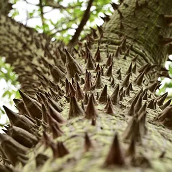 The Sandbox Tree is terrifying, and it belongs on any list of the most dangerous trees. Found throughout the Americas, the Sandbox Tree has sharp spikes along its trunk and poisonous sap that can cause a nasty rash.