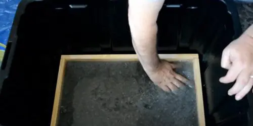 - Place your frame into the bin and fill it with water. Ideally, the water should come to just below the top of the frame.
