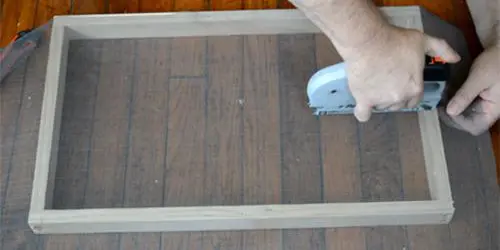 Finally, staple screening material onto one side of the frame, working from the center outwards.