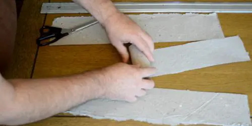 - Roll the paper onto the cardboard tube, overlapping pieces over each other.