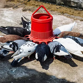 Pigeons need grit as other poultry birds do. Red pigeon grit is the best choice. If it’s not available, then you can use regular poultry or game bird grit.