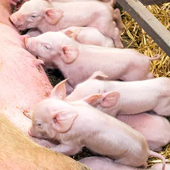 Like freshening and lambing, farrowing is the term for when a pig is giving birth.