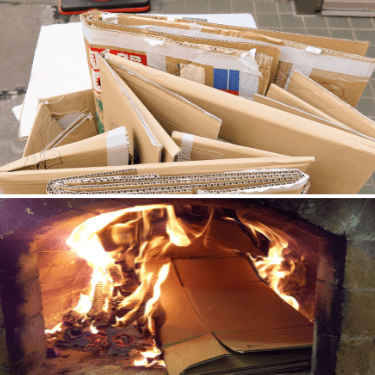 #27. Cardboard burns well, so it is useful as a fire starter or kindling. Tear it into strips and soak it in paraffin wax for excellent charcoal starters and fire starters. This is a good use for cereal boxes, toilet rolls and extra cardboard of all types. Without the wax coating it will burn faster, but is still a useful fire starter.