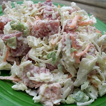 One popular dish was corned beef luncheon salad, which contained canned corned beef, canned peas, cabbage, lemon juice, vinegar, and of course, plain gelatin. It was popular and inexpensive to make.