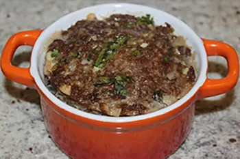 Meatless meatloaf could be made out of anything – from liver to raisins, peanuts and more, just about anything you had hanging out in the refrigerator or pantry could be thrown into this dish.