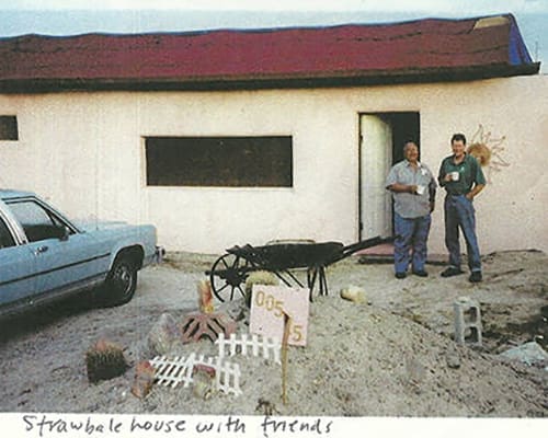 Anyway, not knowing how to go about it, I visited a California architect who built the state’s first approved strawbale house near Bishop (he then built one for himself, too). Then I moved to Ponderosa Village, an “intentional community” in Washington state. My initial incentive to go there was a strawbale housebuilding workshop they were running; at the time Ponderosa had a variety of other housebuilding methods in use, including rammed earth, earth-bermed, geodesic domes and log cabins, but nobody had built in strawbale yet.