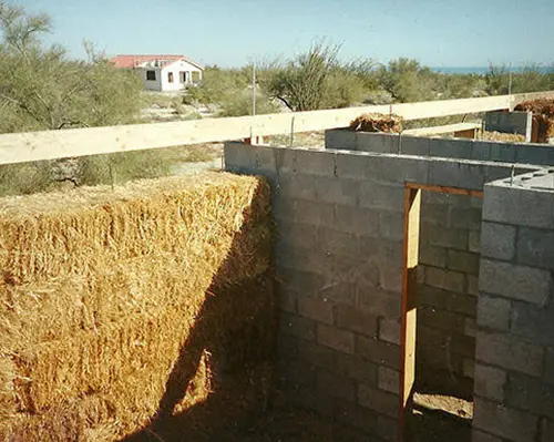 - The bales are stuccoed on the outside and inside, making them impervious to heat – even the heat from a blowtorch won’t make it through.