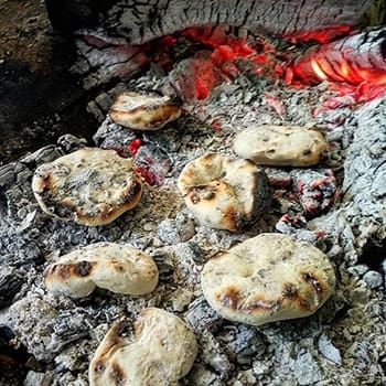Ash cakes require fire to cook them over. If this is impossible, I strongly suggest skipping this one. However, if you’re out in a primitive camp or you’re in a survival situation, make sure that you’re burning food-safe wood. No painted wood, no seasoned wood; you’re looking for dry stuff that is as natural as you can make it. Otherwise, you may get ill from fumes coming from the wood that permeates the ash cake.