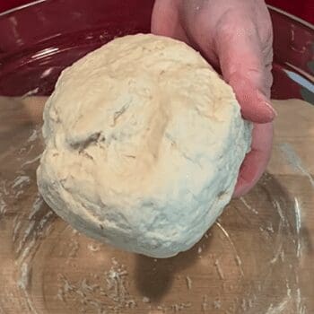 Mix the flour, salt, and butter together, adding the water slowly until you get a dough that is malleable with floured hands. You don’t want it to stick too much, but keep in mind that you’ll be kneading or rolling the dough out to make your tortillas flat. It should be in the area of 2 cups of water, but keep in mind that your exact flour and butter vs oil ratios will mean you may have to play with 1 and a half to 2 cups of water within the exact recipe.